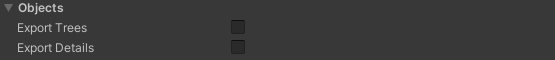 Setting to enable exporting trees, grass and detail meshes from the Unity terrain data.