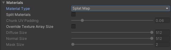 When Splat Map material is selected, you can override texture array size of each texture type. This is useful