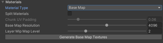 When Base Map material is selected, a color map and a normal map are generated for the terrain.