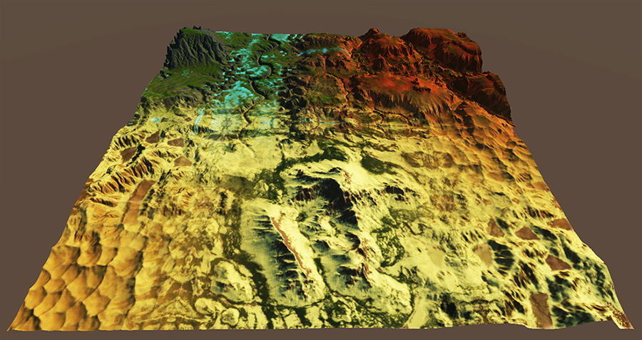 Terrain mesh at full resolution without mesh simplification (right):